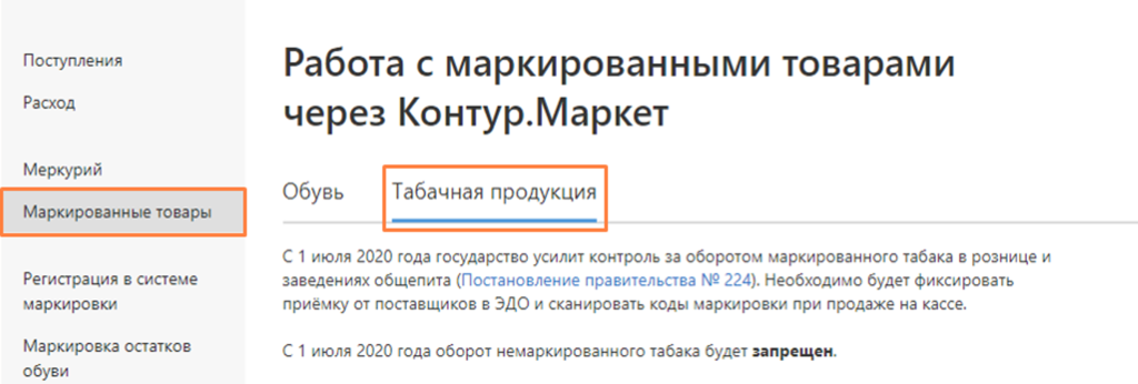 Обратите внимание. Чтобы работать с табаком, клиенты Маркета к основному тарифу подключают модифкатор «Маркировка» — посмотрите стоимость или отправьте заявку.